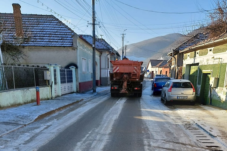 25 de tone de sare și 5 metri cubi de nisip, împrăștiate de SPGLC pe străzile și trotuarele de pe raza orașului Cugir