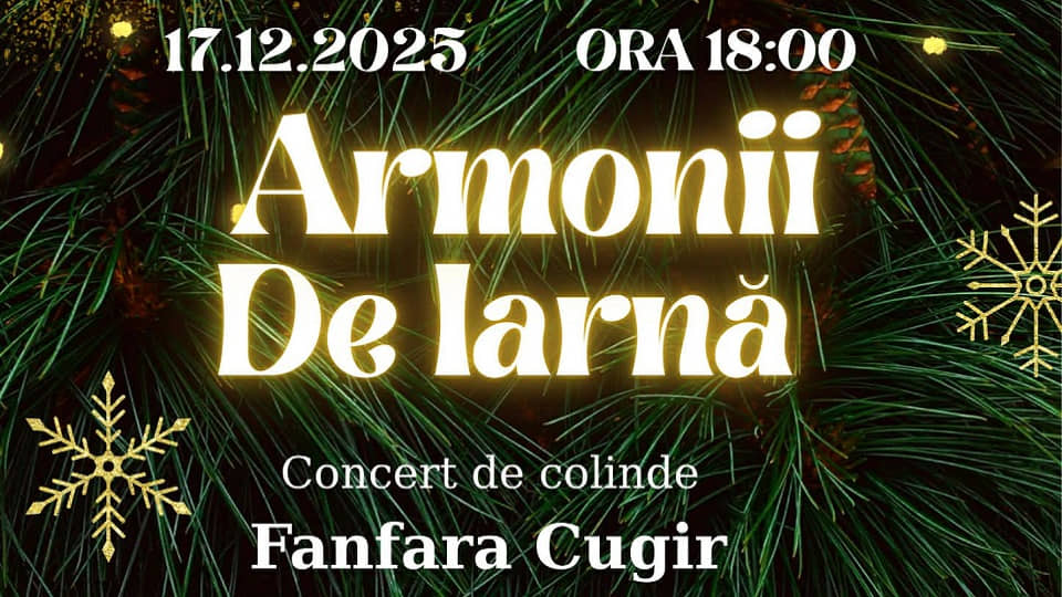 Miercuri, 17 decembrie 2025, de la ora 18.00, Fanfara din Cugir și invitații săi vor oferi un concert de colinde pe scena Centrului Cultural „Valentin Uritescu”.