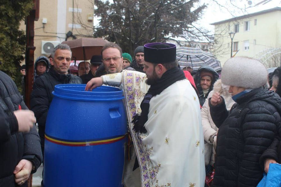 Organizatorii au amplasat pe platoul și interiorul Bisericii Ortodoxe „Adormirea Maicii Domnului” din Cugir, 6 butoaie umplute cu apă, puse la dispoziția credincioșilor care au dorit să ia apă sfințită acasă.