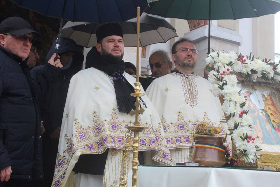 Evenimentul a continuat în afara lăcașului de cult, unde, conform tradiției, soborul de preoți format din Bogdan Șalariu și Adrian Cebotari, au săvârşit slujba de sfințire a apelor (Aghiasmei Mari).