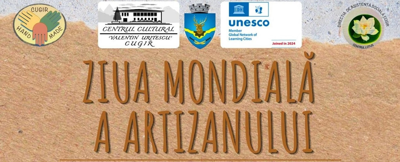 Primăria orașul Cugir organizează sâmbătă,18 aprilie 2026, între orele 15.00 – 19.00, prima ediție a Zilei Mondiale a Artizanilor, eveniment ce se va desfășura în Parcul Stadion din localitate.