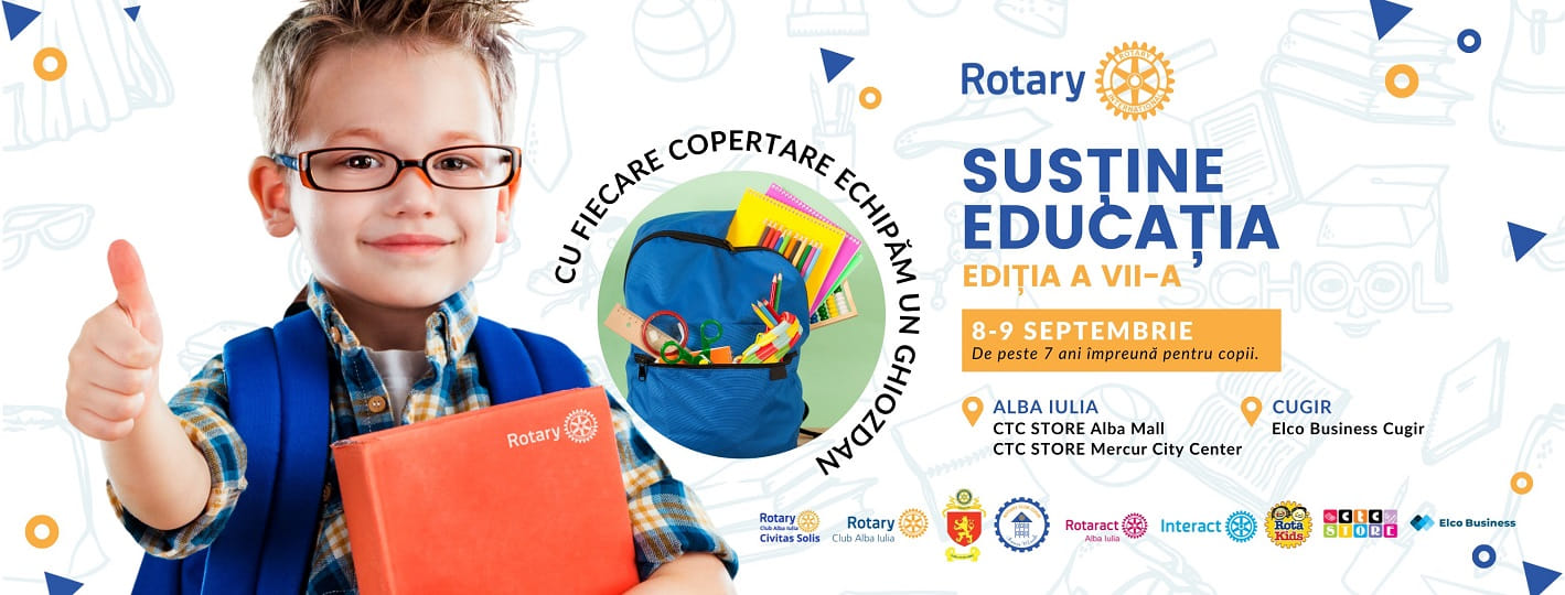 Rotary Club Cugir Anima Mundi derulează și în acest an proiectul „Rotary Susține Educația”, dedicat sprijinirii copiilor din familii defavorizate la începutul noului an școlar.