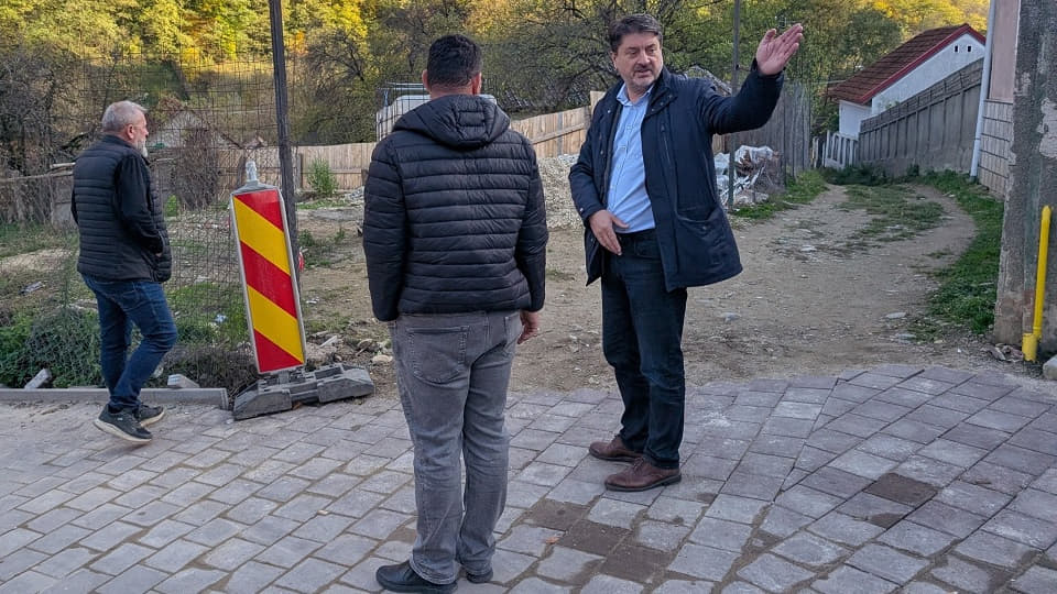 Primarul Cugirului, Adrian Teban, vizită pe teren pentru a verifica stadiul lucrărilor de reabilitare a străzilor Făgețel (Cindeni) și Ciprian Porumbescu (Râul Mic)